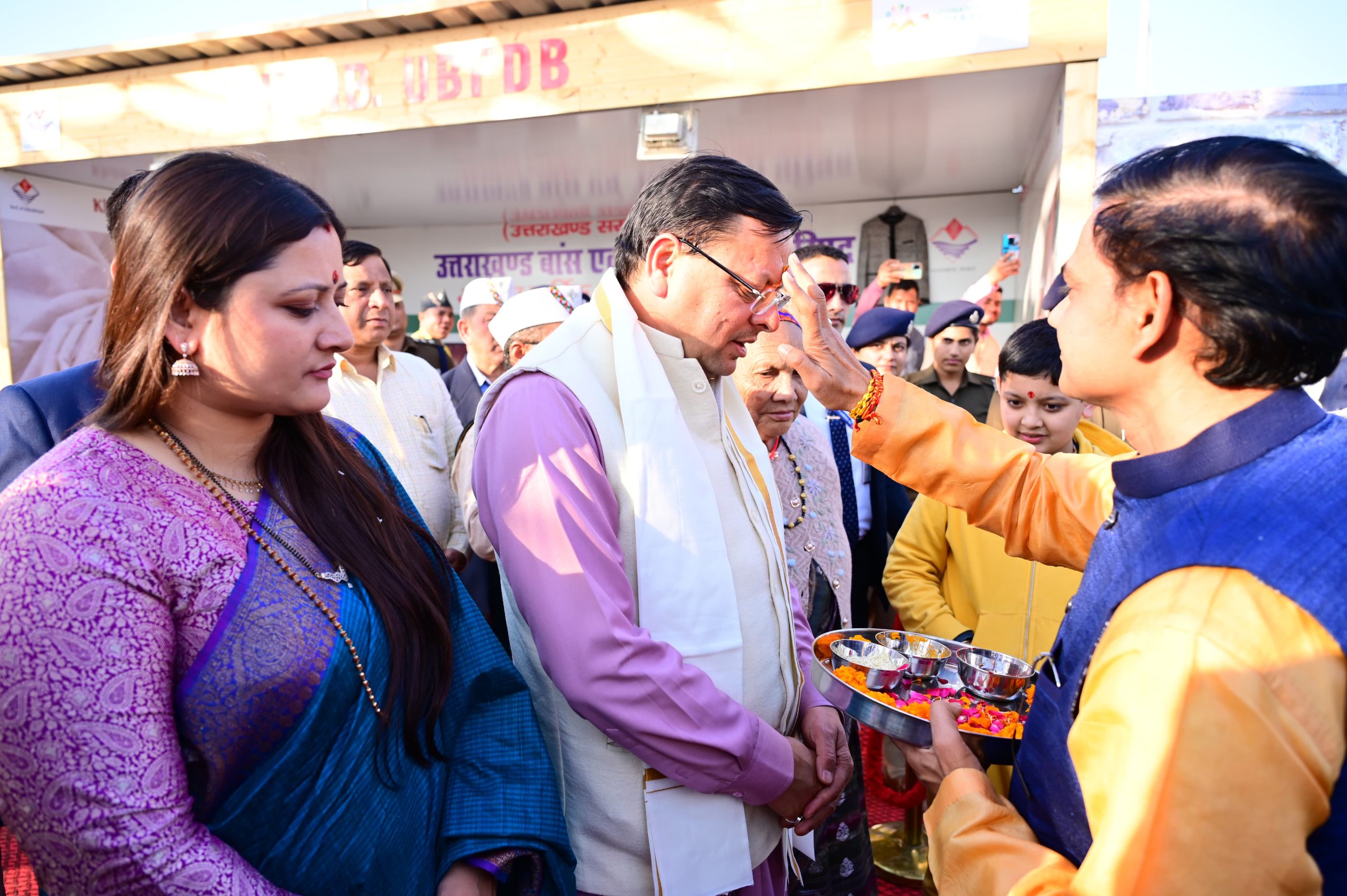 मुख्यमंत्री धामी महाकुंभ में बनाए गए उत्तराखंड मंडपम का अवलोकन किया