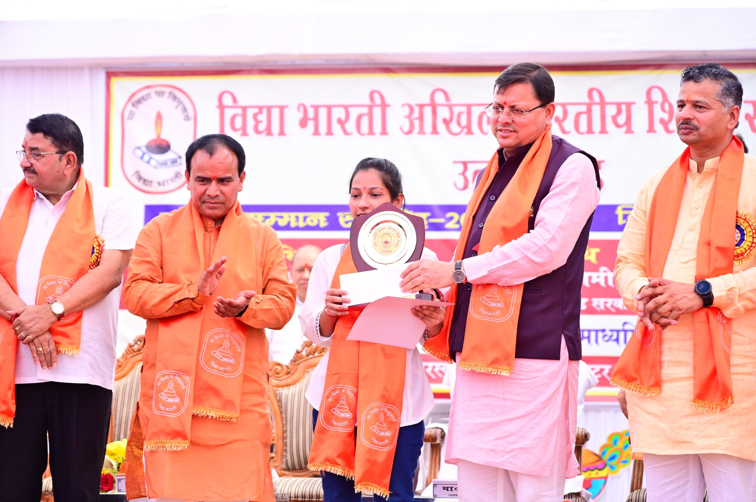 कहा, प्रदेश में विद्या भारती द्वारा 500 से भी अधिक विद्यालय संचालित किए जा रहे हैं, जिनमें एक लाख से भी अधिक विद्यार्थी शिक्षा ग्रहण कर रहे हैं। इसके साथ ही विद्या भारती द्वारा आदिवासी बहुल क्षेत्रों और राज्य के सीमांत क्षेत्रों में भी सैकड़ों विद्यालय खोले गए हैं। भारत सरकार द्वारा विद्या भारती के सात स्कूलों को सैनिक स्कूल के रूप में स्थापित करने के लिए चयनित करने पर मुख्यमंत्री धामी ने खुशी जताई।