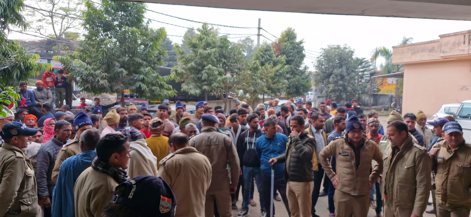 पुलिस ने दो युवकों को हिरासत में लिया, दो अन्य की तलाश, मौके पर भारी संख्या में पुलिस तैनात