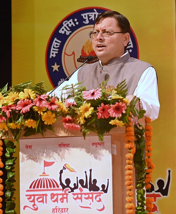 मुख्यमंत्री पुष्कर सिंह धामी ने हरिद्वार में सेवाज्ञ संस्थानम द्वारा आयोजित चतुर्थ युवा धर्म संसद का किया शुभारंभ