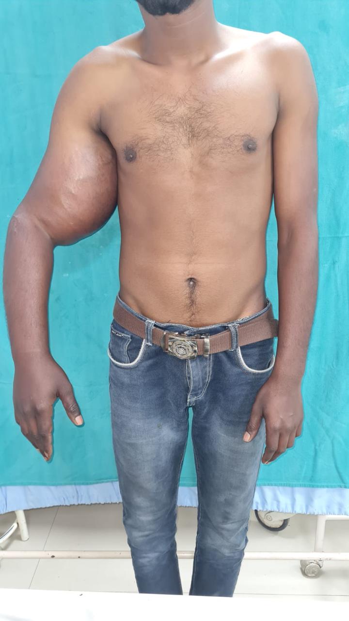 गांठ का वजन बढ़ने से मरीज को हाथ के मूवमेंट करने में परेशानी होने लगी। डॉक्टरों के मुताबिक, गांठ ने ट्यूमर का रूप ले लिया था और इसका कैंसर में परिवर्तित होने का खतरा था। एम्स के आर्थोपेडिक और बर्न एंड प्लास्टिक सर्जरी विभाग के चिकित्सकों की टीम ने री-कंस्ट्रक्शन सर्जरी का निर्णय लिया और 14 मार्च को रोगी की सर्जरी प्रक्रिया को बखूबी अंजाम दिया गया।