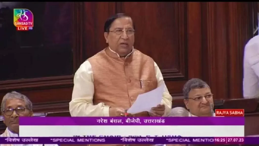 उत्तराखंड से राज्यसभा सांसद नरेश बंसल ने मानसून सत्र में संसद में उठाई मांग