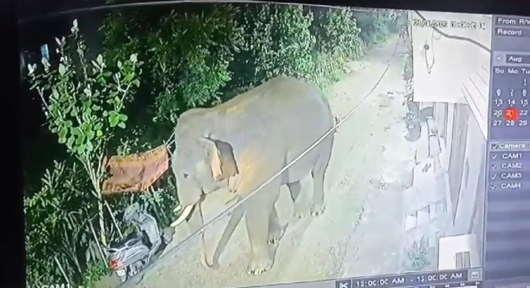 इससे इलाके में दहशत का माहौल है।सीसीटीवी कैमरे में कैद हाथी कॉलोनी में घुसता है और फिर गली से होकर बाहर निकलता है। हाथी के पीछे दो कुत्ते भी भौंकते नजर आ रहे हैं।
