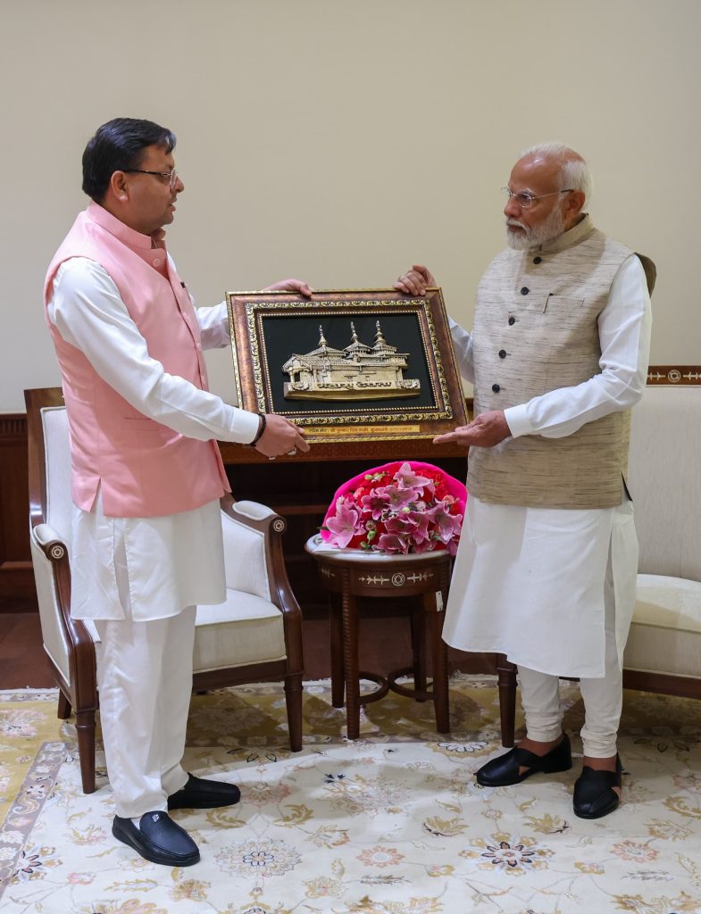 तीसरी बार प्रधानमंत्री बनने पर मोदी को मुख्यमंत्री पुष्कर सिंह धामी ने दी बधाई, स्मृति चिन्ह भी भेंट किया