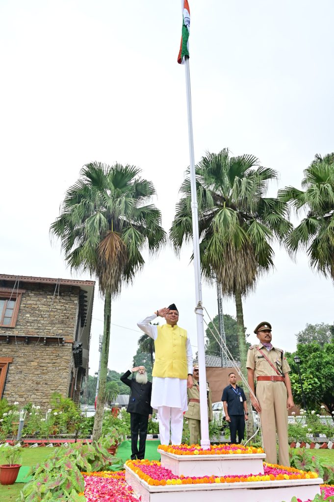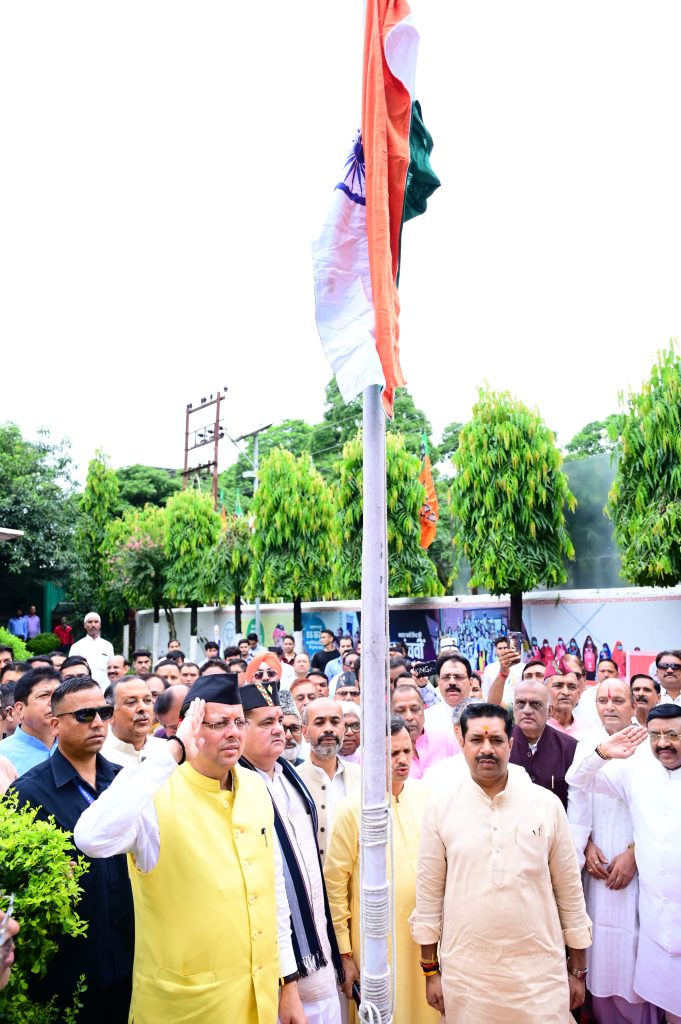 देहरादून। मुख्यमंत्री पुष्कर सिंह धामी ने बृहस्पतिवार को 78वें स्वतंत्रता दिवस पर अपने आवास पर ध्वजारोहण करते हुए प्रदेशवासियों को शुभकामना देते हुए देश की आजादी एवं मां भारती की रक्षा के लिए अपना सर्वोच्च बलिदान देने वाले महानायकों का स्मरण किया।