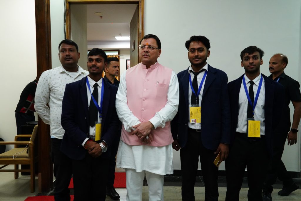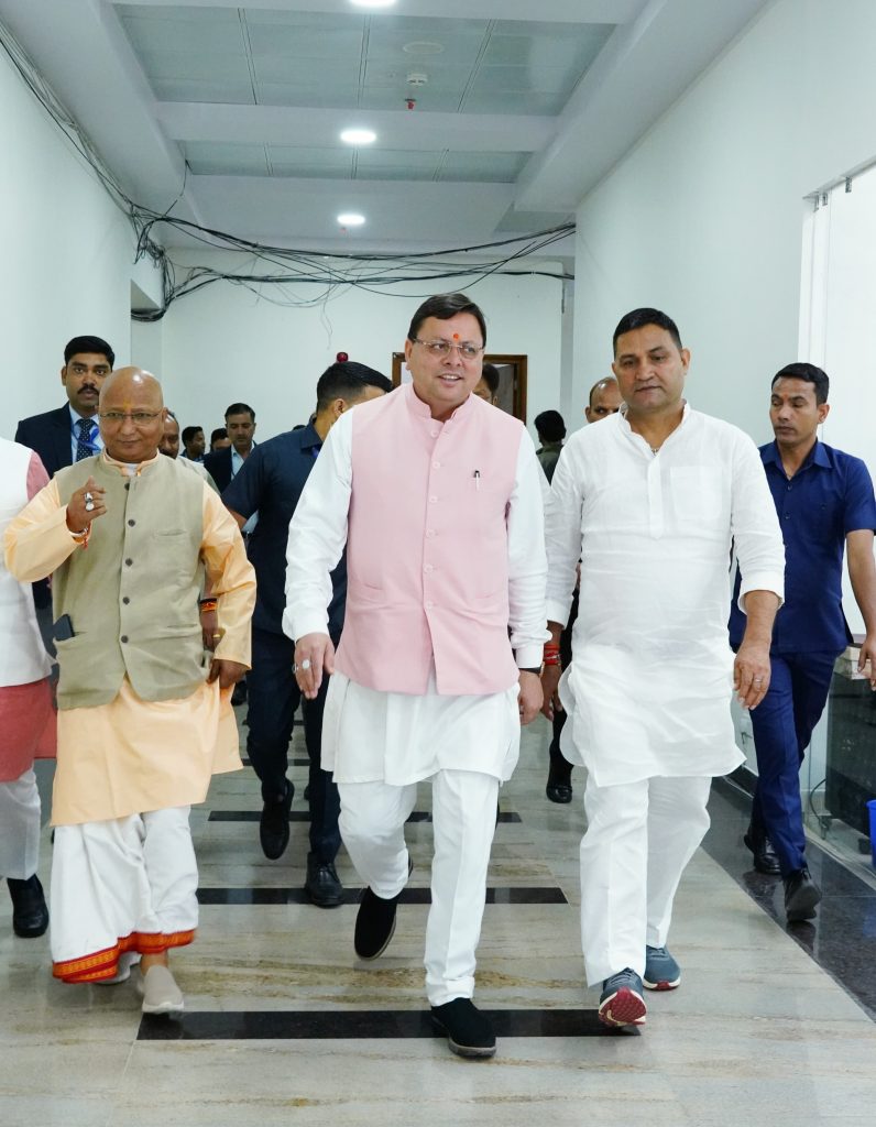 मुख्यमंत्री पुष्कर सिंह धामी शुक्रवार को विधानसभा के सत्र के अनिश्चितकाल के लिए स्थगित होने के बाद सत्र के संचालन में लगे कर्मियों और अधिकारियों से मुलाकात कर जहां सफल सत्र संचालन के लिए सभी को बधाई दी, वहीं सभी की कुशलक्षेम भी पूछी।