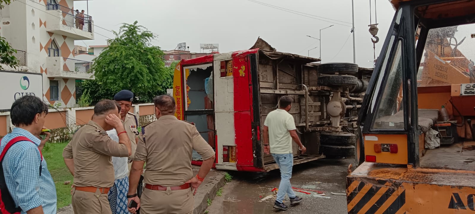 पुलिस के मुताबिक, नजीबाबाद डिपो की बस यात्रियों को लेकर हरिद्वार आ रही थी। कनखल थाना क्षेत्र के एक होटल के पास अचानक एक स्कूटी सवार आ गया, जिसको बचाने में बस डिवाइडर पर चढ़कर पलट गई और बस में सवार यात्री घायल हो गए हैं। बस पलटने की सूचना पर ज्वालापुर पुलिस क्षेत्राधिकारी निहारिका सेमवाल, पुलिस क्षेत्राधिकारी ट्रैफिक राकेश रावत भी पुलिस फोर्स के साथ मौके पर पहुंचे।