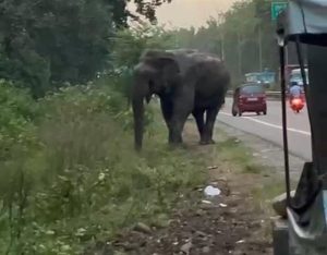 जंगल से निकल हाईवे पर पहुंचा हाथी, की मस्ती, दर्जनों लोगों ने बनाए वीडियो बेबाक…